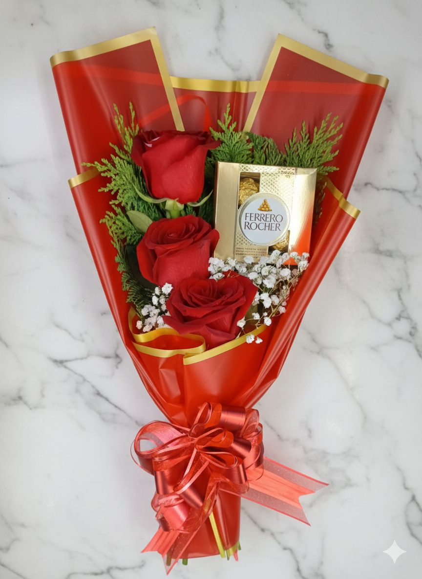 Ramo de 3 rosas más bombón Ferrero Rocher (Cod 004)