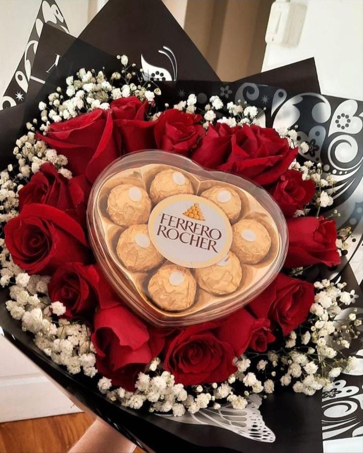 Ramo de rosas corazón con ferrero rocher (Cod 014)